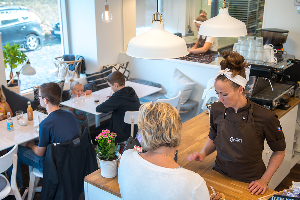 Mitt i Kalmar hittar du oss. Här gör vi praliner, glass och bakverk allt av vår egen choklad.