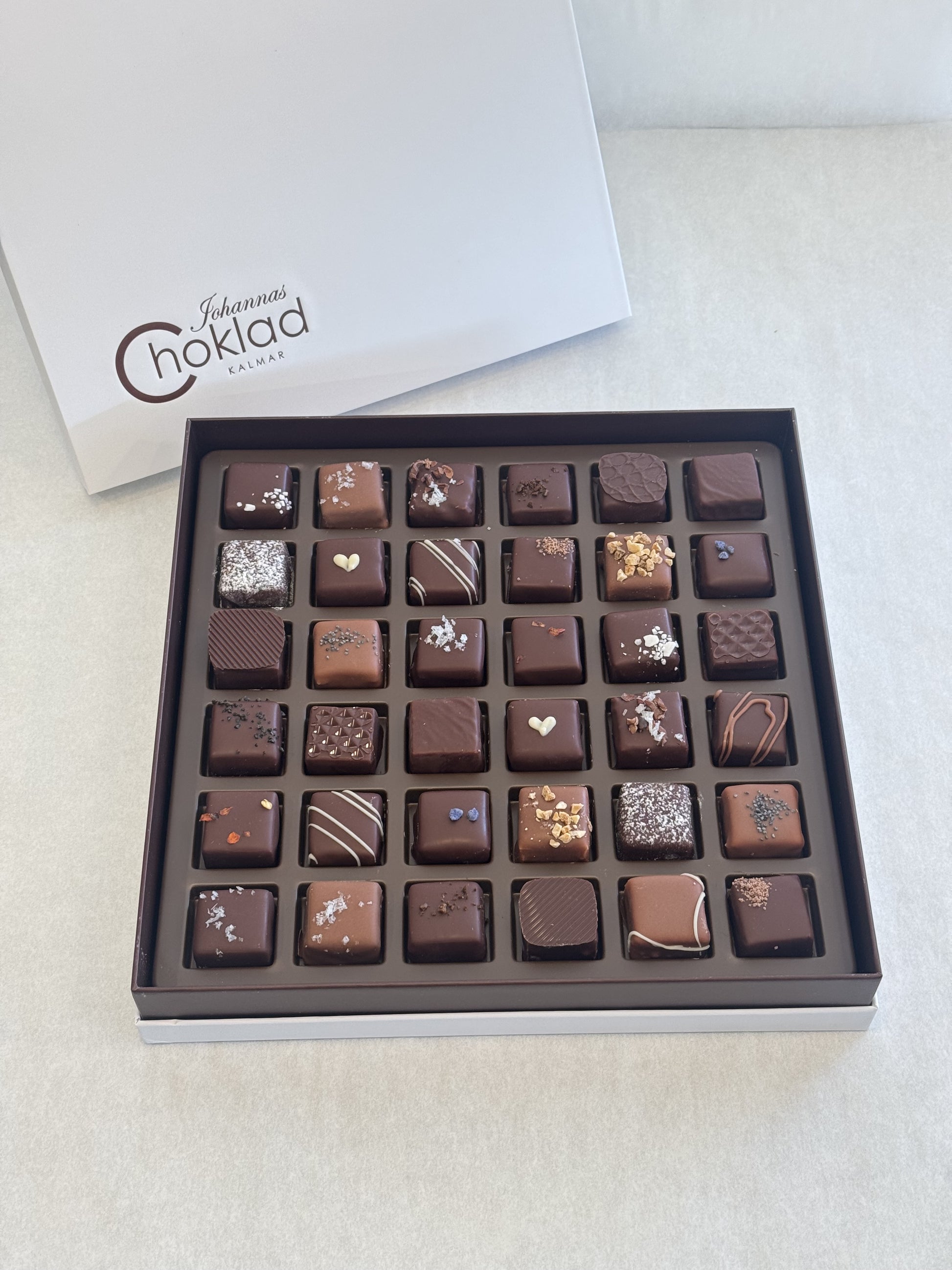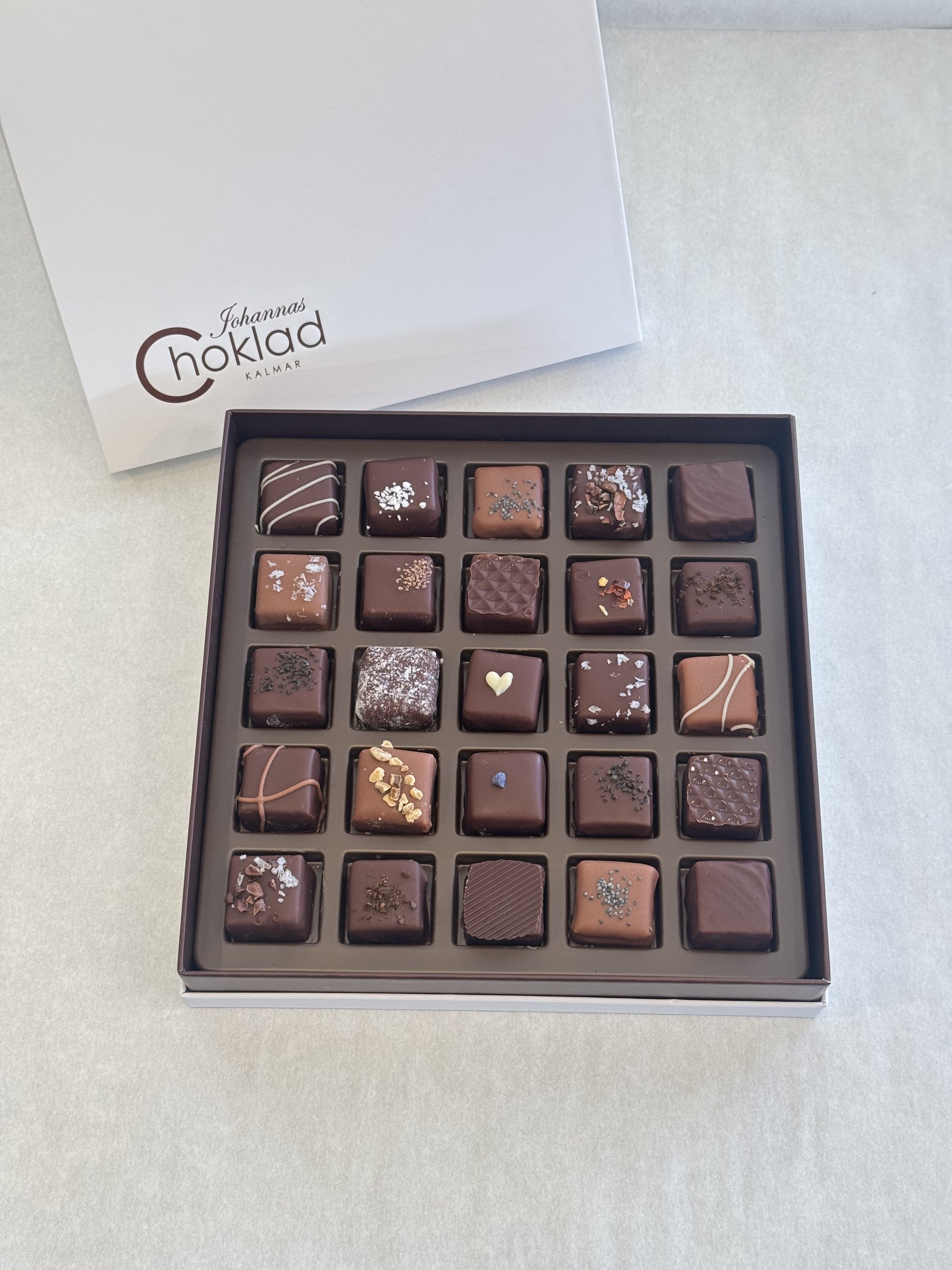 Bilderna på pralinaskarna stämmer därför inte alltid med hur pralinerna ser ut när du får din ask, utan kan variera beroende på vilka vi har i sortiment just nu och vilka vi har packat just i din ask. Har du önskemål om vika praliner som ska finnas i din ask, skriv det i kommentarer så löser vi det.