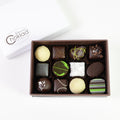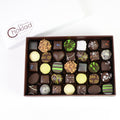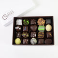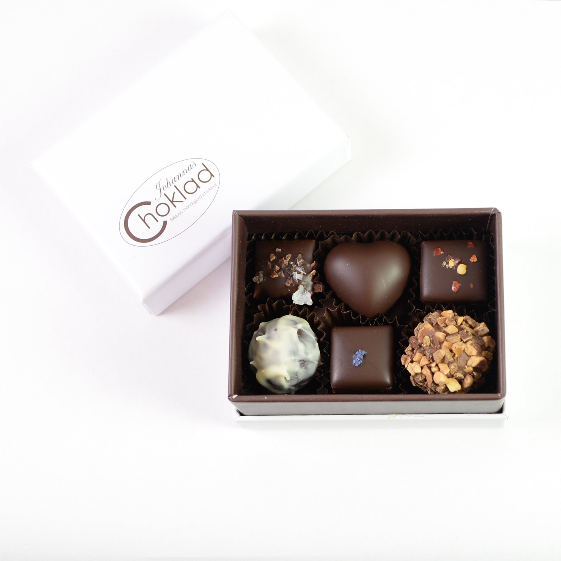 När du beställer en av våra pralinaskar så packar vi de med blandade praliner från vårt sortiment. Smakerna är allt från våra populära standardpraliner som alltid finns i vårt sortiment som tex, passionsfrukt, lakrits, kolakräm, naturell, salta nibs, viol, espresso, whisky, cognac. Dessa blandar vi sedan upp med smaker som följer våra säsonger och högtider.