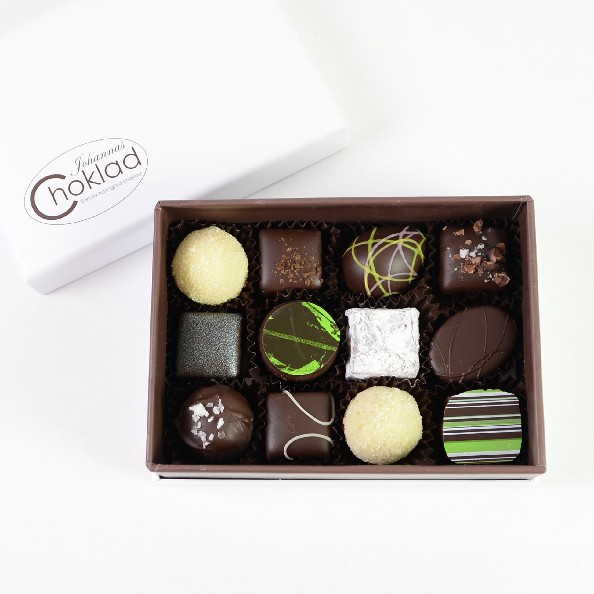 Bilderna på pralinaskarna stämmer därför inte alltid med hur pralinerna ser ut när du får din ask, utan kan variera beroende på vilka vi har i sortiment just nu och vilka vi har packat just i din ask. Har du önskemål om vika praliner som ska finnas i din ask, skriv det i kommentarer så löser vi det.